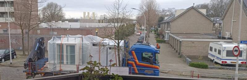 Maar al gauw arriveren er nog meer containers zoals je ziet, deze worden voor de rij kantoorunits waar we het eerder over hadden, nog meer volgt hieronder.