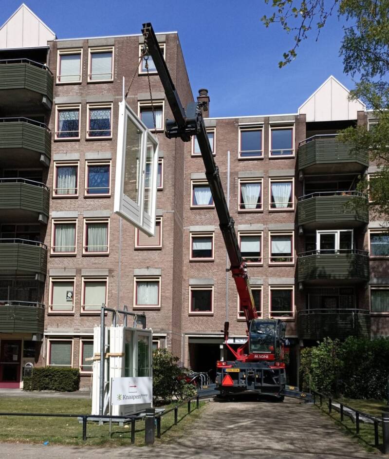 We wonen eigenlijk op een perfecte plaats, je ziet bijna alles aankomen op deze plek wat er nodig is voor de renovatie, klik maar eens op bovenstaande foto! Hierboven en de foto's daaronder zie je de nieuwe balkondeuren en de klapramen voor in het balkonkozijn aankomen op woensdag 29 maart 2022. Ze staan er mooi te staan maar staan nog niet op zijn plaats he!! Maar dat zal vlug veranderen kijk maar eens naar de volgende serie foto's daaronder!!