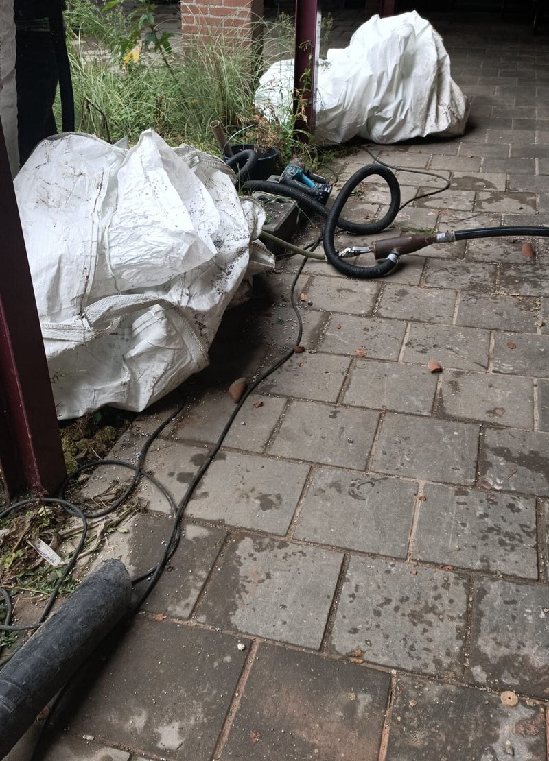Zelfs de overkapping naar de Eerdbrand wordt nog schoongemaakt.