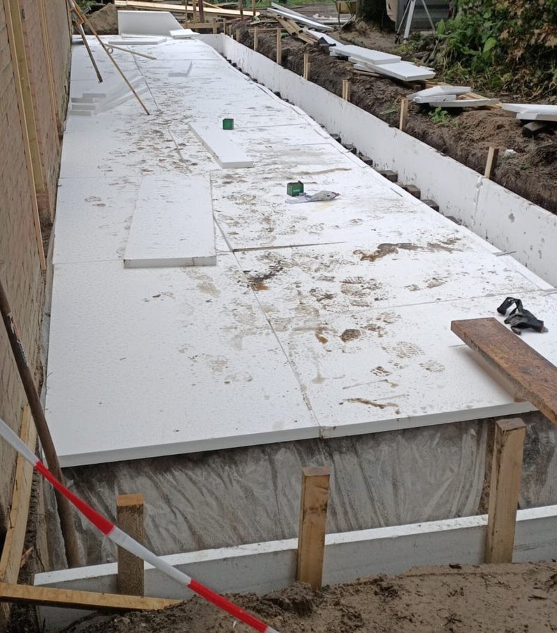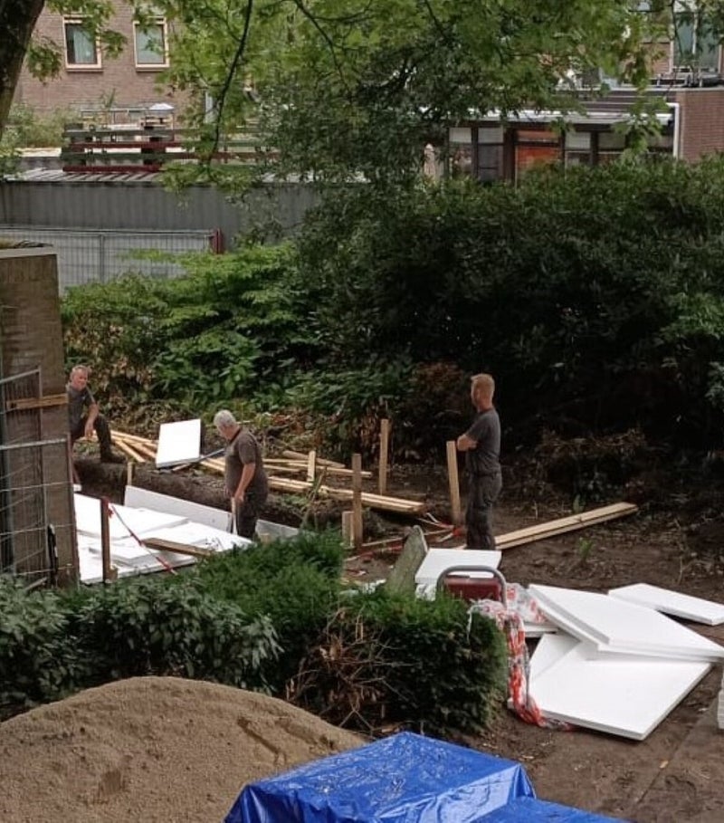En onder supervisie en op grote hoogte in goede banen leidend van uitvoerder Rolf, schiet het al snel een stuk in de goede richting, want deze 4 bovenstaande foto's van 24 juli 2023 laten zien dat de vloer van de twee uitbreidingen op 26 juli 2023 gestort kunnen worden.