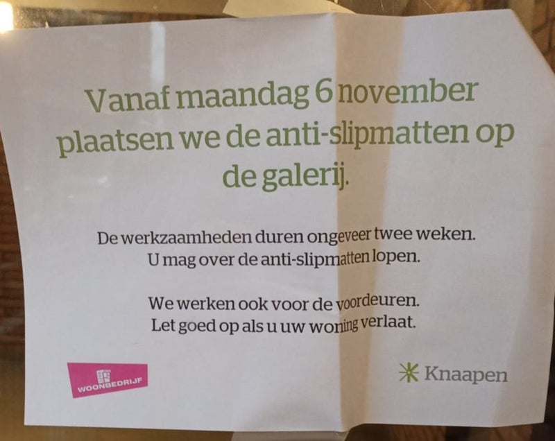 De lifthallen zijn ondertussen ook voorzien van nieuwe vloerbedekking en alles is geschilderd. Op de galerijen worden ook nog antislipmatten gelegd, zodat we bij regen veiliger over de galerij kunnen lopen.